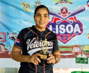 La oficial Marianny Tamarez de los Veteranos, fue la líder de ponches en el torneo de la Liga de Oficiales Académicos (Lisoa), en su versión 2025. (Fuente externa).