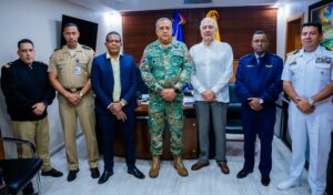 El titular de la DGM, por su lado, se hizo acompañar del general de brigada piloto Juan Carlos Vicente Féliz, FARD, director de Inteligencia; coronel Manuel Carrasco Guerrero, ERD, director de Control Migratorio, y el capitán de fragata Esteban González, asistente especial del Director General.