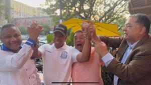 Durante su estadía en el Alto Manhattan este sábado en el show «Calles de Verano», compartimos un rato con el alcalde Eric Adams, quien al finalizar el evento fue a cenar y fumarse un cigarro al aire libre en un restaurant al lado de donde se celebró el evento. El autor de esta columna y los colegas Manuel Ruiz y Alduey Sierra teníamos ya unos 40 minutos en el negocio, cuando éste llegó junto a Ydanis Rodríguez y otros líderes comunitarios.  Decidieron sentarse a pocos pies de nuestra mesa. Se entabló conversación y una entrevista. Decenas de dominicanos comenzaron aglomerarse alrededor del Ejecutivo Municipal para una foto, un autógrafo, saludo y conversar, entre otros buenos gestos hacia él. Luego de finalizar nuestra entrevista múltiples connacionales nos solicitaron (periodistas) darle las gracias al alcalde por permanecer por varias horas compartiendo con la comunidad de manera humilde, llana, abierta y sin obstáculo. Accedimos y levantamos las manos del reeleccionista alcalde. El cesar de múltiples dominicanos no se percibió por largo rato, saludando al hombre más importante de NYC, la ciudad más importante en el mundo, y estar entre ellos. Los vítores y slogan: «Cuatro más», «Eric-Eric Adams» y «Vuelve y vuelve» eran continuo. Luego de levantar las manos de Eric, para la salvedad de la imparcialidad en el periodismo, que implica tratar todas las partes de manera justa, evitamos la manipulación de la información o la expresión de opiniones personales que puedan influir en la percepción del público. Y esta acción, consciente en hacerlo, no implica falta de valentía o firmeza en la defensa de los propios principios o derechos, y a la vez defender con determinación lo que creemos los tres, pero si nos sentimos complacidos con el alcalde por haber compartido con los nuestros. Lo cortés no quita lo valiente. Ver video = https://www.youtube.com/watch?v=TtNtZ5W51HQ