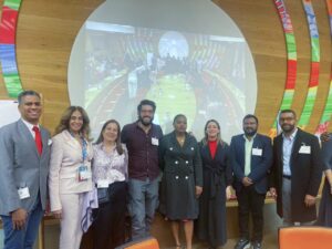 Durante esta misión en la FAO, Reyes estuvo acompañada por la agricultora Ámbar Rijo, representante del Proyecto Casa Sombra María Ruiz, en La Altagracia; Anthony Franco, encargado de Agricultura Familiar de la DDSS; y Luis Yanuel Cordero, especialista en protección social y juventud, sele