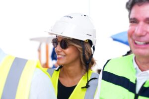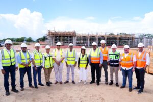 Pie de foto 1… El ministro de Energía y Minas, Joel Santos, junto a la viceministra de Innovación y Transición Energética, Betty Soto; el director ejecutivo de la Comisión Nacional de Energía , Edward Veras; y otros altos representantes del sector eléctrico mientras inspeccionan trabajos de construcción en el parque fotovoltaico Cotoperi I, II y III en La Romana.