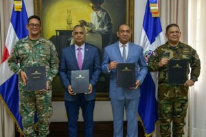 La coordinacion y firma de la rubrica en el Palacio Nacional por el ministro de la Presidencia y presidente del Consejo Nacional del 9-1-1, Joel Santos Echavarría; el ministro de Obras Públicas, Deligne Ascención, y el director ejecutivo del Sistema 9-1-1, coronel piloto Randolfo Rijo Gómez, quienes estuvieron acompañados por el director de la Comipol, mayor general Rafael Vásquez Espínola.