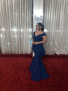 Para esta ocasión especial, María Jiménez contó con un estilismo completo proporcionado por la empresa Bright Occasions, que se encargó de resaltar su elegancia. Peinado elegante, un traje azul estilo sirena que acentuaba su figura de manera impecable y un maquillaje perfecto para la ocasión, fueron los elementos que la acompañaron durante toda la cobertura.