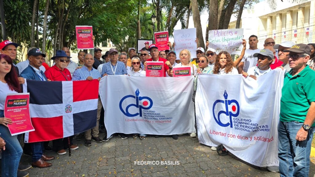 SANTIAGO, RD. – Decenas de periodistas, comunicadores y trabajadores de la prensa de Santiago y otras provincias del Cibao marcharon este domingo en el parque Duarte, frente a la Gobernación Provincial, para denunciar los continuos atropellos cometidos por miembros de la Policía Nacional. Esta manifestación subraya una preocupante tendencia de violaciones a la libertad de prensa y expresión, derechos consagrados en la Constitución de la República Dominicana.