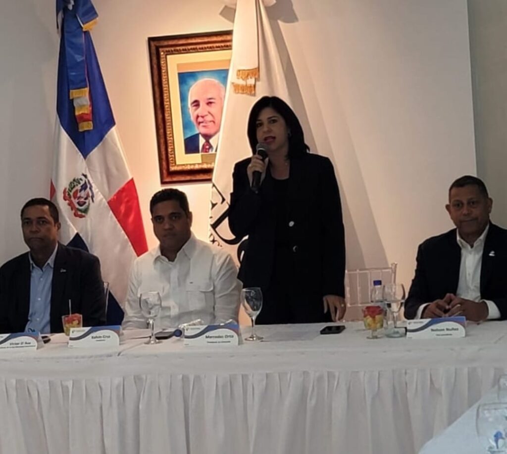 “La foto muestra a la senadora electa por Hermanas Mirabal, Mercedes Ortiz, mientras se dirigía a los alcaldes presentes en el encuentro.”