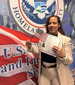 Yomary Rojas, esposa del periodista Aquiles Rojas, oriunda de Santiago de los Caballeros, por su ejemplar comportamiento ante la sociedad norteamericana, poniendo en alto la bandera tricolor, figura entre los nuevos ciudadanos estadounidenses que el Servicio de Ciudadanía e Inmigración de los EE. UU. (USCIS) juramentó en el 26 Federal Plaza-NYC. Convertirse en ciudadano(a) de USA representa un logro significativo y una oportunidad de crecimiento personal, familiar y profesional. Este estatus otorga múltiples beneficios y derechos fundamentales, que refuerzan el sentido de pertenencia y participación activa en la sociedad norteamericana. «Ser ciudadana estadounidense es una meta que he alcanzado con mucho esfuerzo y gratitud» ha declarado. Si usted la ve caminar por ahí, como lo hace de costumbre, dígale «Yomary, usted es un valor dominicano en NY»