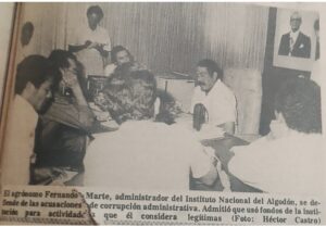 Con la denuncia de corrupción en el INDA, expuesta en el semanario “Hablan los Comunistas”, el PCD reclamó una explicación sobre el uso de los cheques números 12583 y 13374, emitidos por la empresa algodonera por las sumas de 78 mil 500 y 3 mil 361 pesos, para saldar una deuda con una firma comercializadora de productos agroquímicos, denominada “Marte, Fernández y Asociados” y comprar en favor de su director la póliza de seguro familiar No. 16463, a la Compañía Nacional de Seguros.