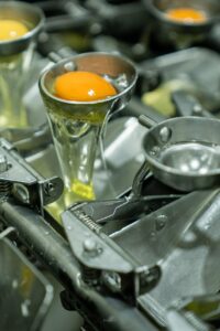 Vista del proceso de desclasificación de clara y yema en la planta