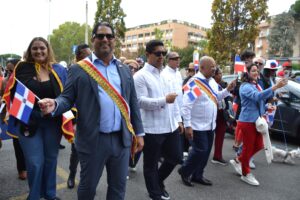 Roma, Italia. La comunidad dominicana recorrió la ciudad de Roma, desde Piazzale Ostiense donde inició el desfile con el derroche de alegría que caracteriza a los dominicanos. Los colores patrios cubrieron las calles y contagiaron a los locales presentes.