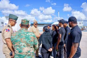 El Vicealmirante Lee Ballester estuvo acompañado del general de brigada piloto Juan Carlos Vicente Pérez, FARD; general® Estenio A. Cubilete C., ERD, encargado De Investigaciones, y el coronel Manuel Carrasco Guerrero, director de Inteligencia, y director de Control Migratorio, respectivamente, de la DGM.